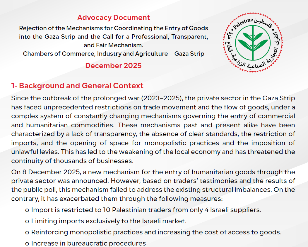 Rejection of the Mechanisms for Coordinating the Entry of Goods into the Gaza Strip and the Call for a Professional, Transparent, and Fair Mechanism.