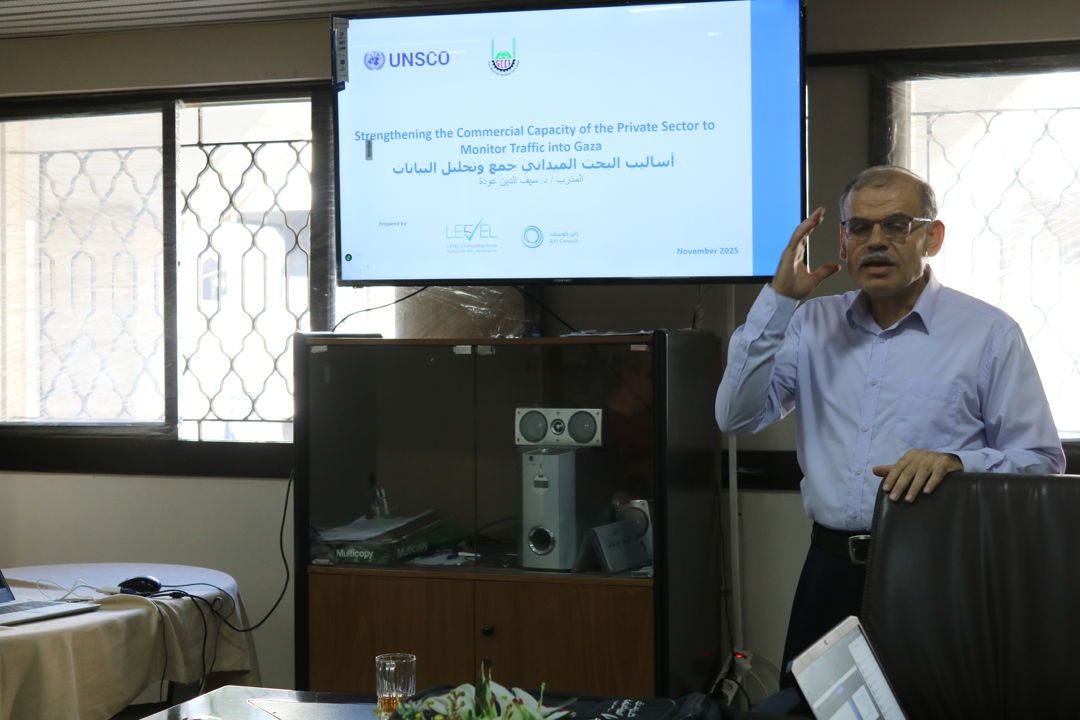 غزة – العلاقات العامة: أطلقت غرفة تجارة وصناعة وزراعة محافظة غزة، اليوم، اللقاء الأول من البرنامج التدريبي المتخصص في جمع وتحليل البيانات الاقتصادية، وذلك ضمن مشروع "حوسبة مركز معلومات القطاع الخاص" الذي تنفذه الغرفة بتمويل من منظمة الأونسكو.